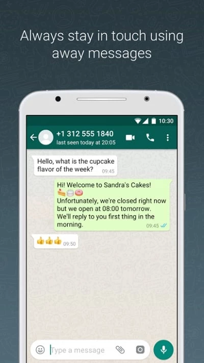 WhatsApp Business APK , iş dünyası için özel olarak tasarlanmış bir anlık mesajlaşma uygulamasıdır. Çok sayıda müşteriyle etkileşim kurarken işletmenizi yerel düzeyden uluslararası düzeye taşımanıza yardımcı olur. Müşterilerle iletişim kurmak veürün ve hizmetlerinizi daha güvenilir bir şekilde sunmak için birçok yenilikçi araç sunar. Uygulamayı aynı cihaza WhatsApp Messenger ile birlikte yükleyebilirsiniz .